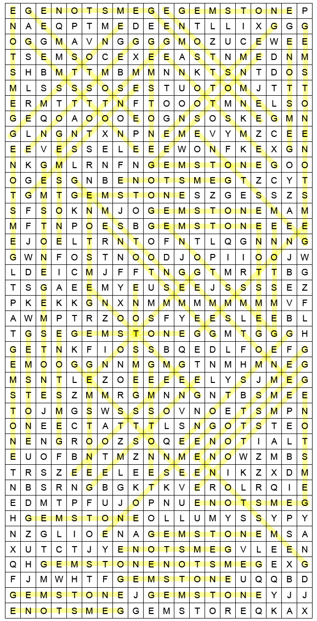 It’s a word search puzzle that contains only one word: GEMSTONE.