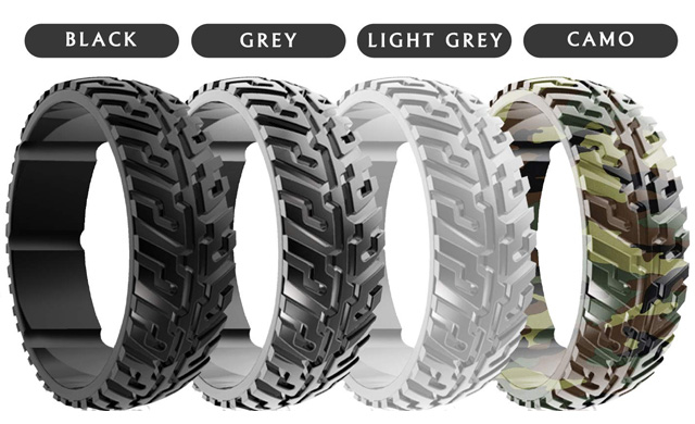 You can buy them in black, or a set of 4 Jeep tire silicone rings that come in black, grey, light grey, camouflage. Silicone rings are made for the active lifestyle. Perfect for off-roads, perfect for your finger.