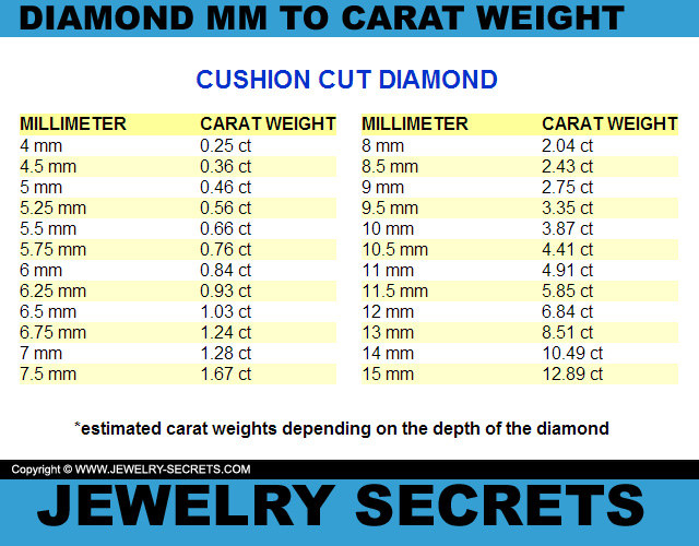 The mm to Carat Weight charts shown below are only the measurements of a face up Diamond (the width of the outline or shape of the stone).